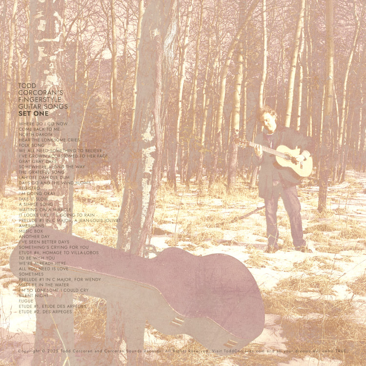 A 26 song greatest hits album entitled TODD CORCORAN’S FINGERSTYLE GUITAR SONGS, SET ONE is scheduled for release in 2025 as a counterpart to the songs found in the 2024 songbook of the same name.